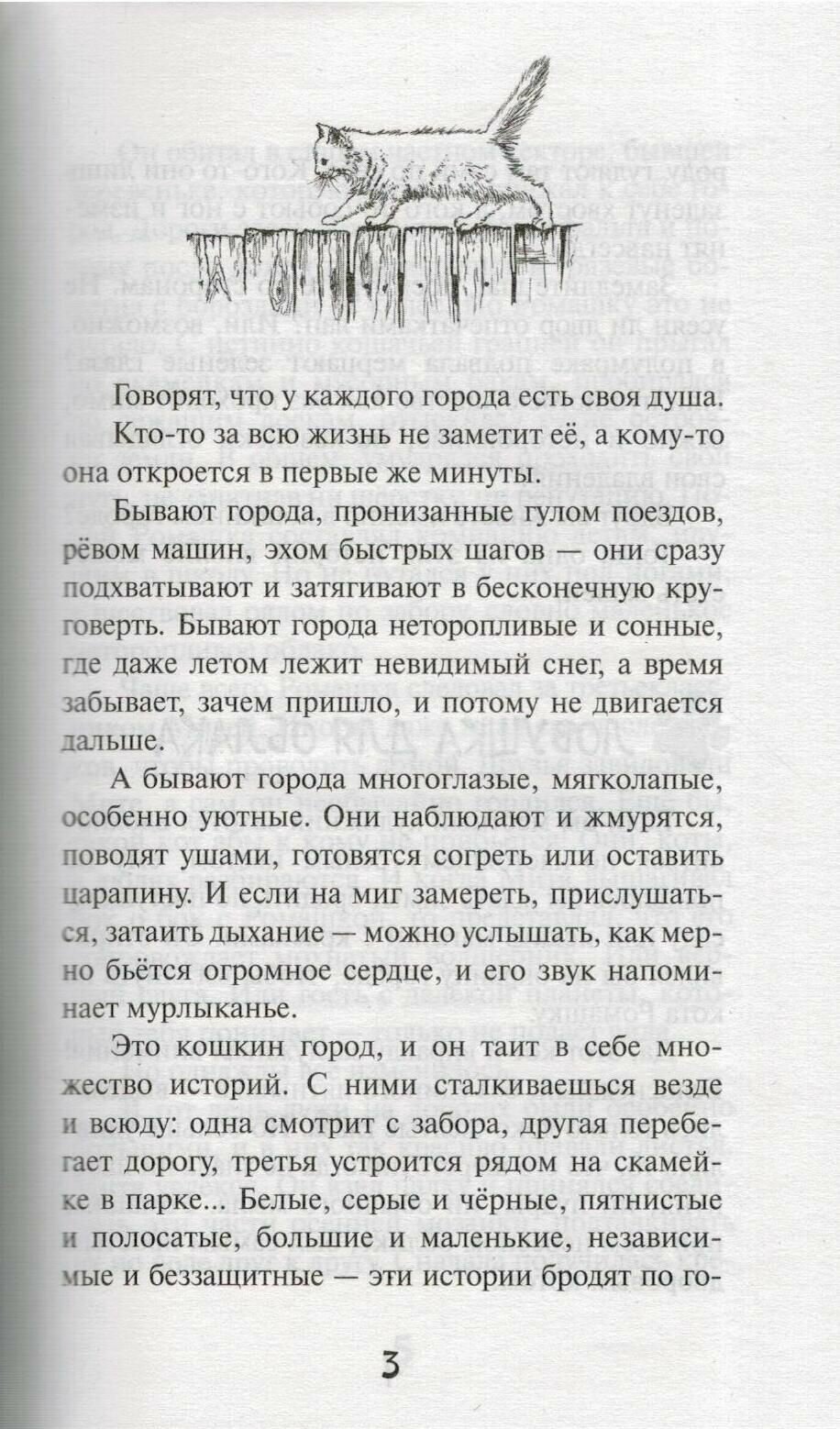 Не все кошки живут в доме. Многие бродят по городским улицам и у каждой свои истории: трогательные и смешные, добрые и немного грустные, открывающие удивительный мир рядом с нами. Барсики и Мурзики переживают приключения, распутывают тайны, обретают друг друга… Истории, собранные в этой книге, рассказывают о кошачести и… человечности.