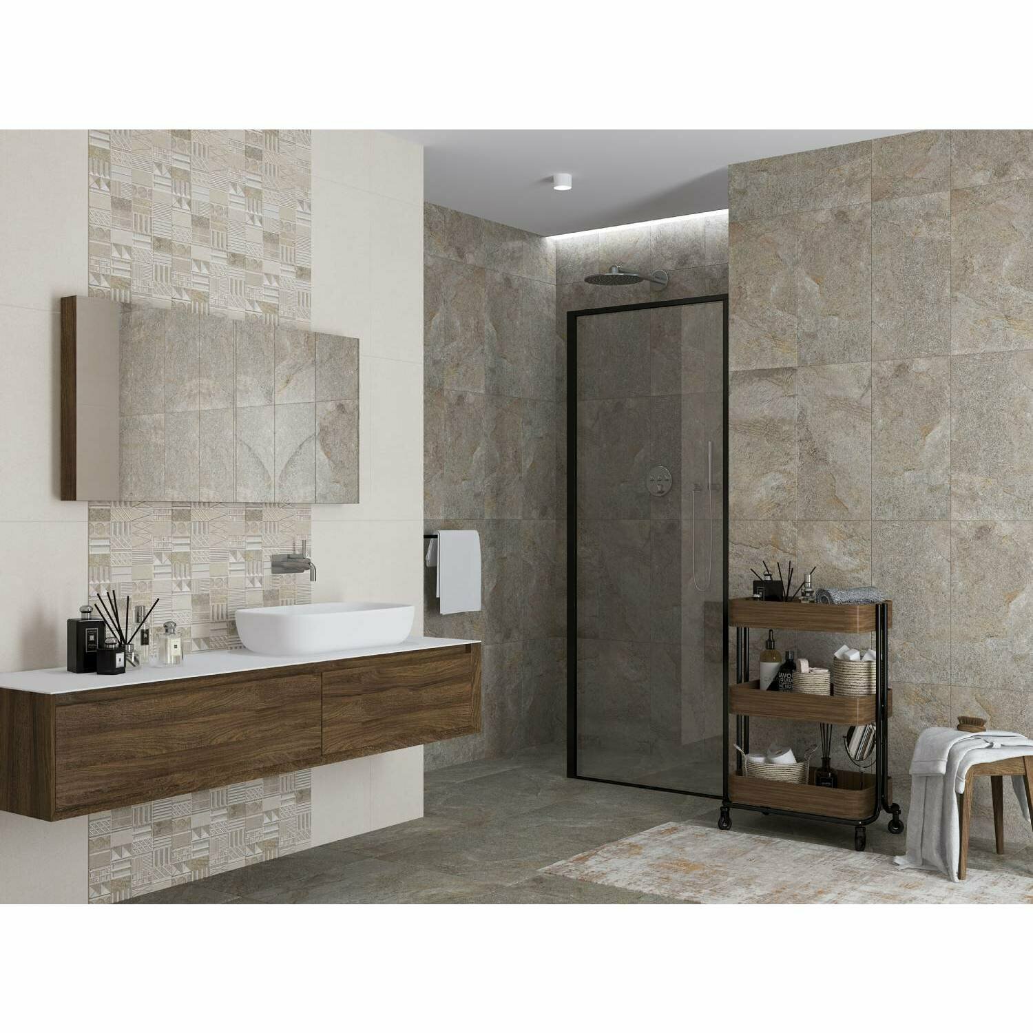 Сегодня кварцит - это основной тренд 2022 года. В коллекции Stone выражена многогранность этого камня. Микрорельеф плиты и матовая глазурь передают тактильную натуральность. Сахароза на матовой поверхности деликатно блестит, придавая глянцевость камню.В основном полотне Stone Quarzit 6 графических лиц - это позволяет выложить плиту без явных повторов в графике. Дополняет насыщенную плиту более сдержанная светлая графика Stone Beige.