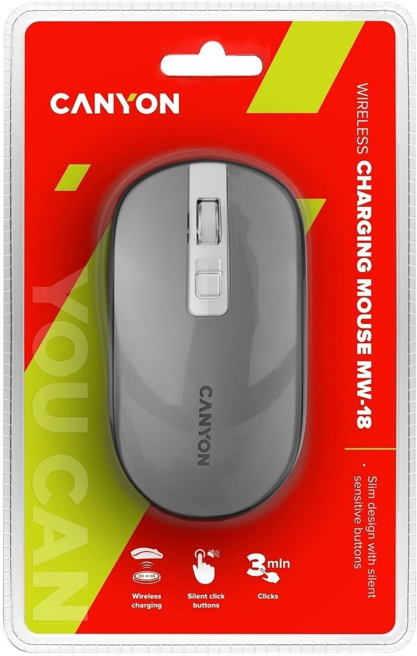 - Беспроводная перезаряжаемая мышь с бесшумными кнопками Canyon MW-18