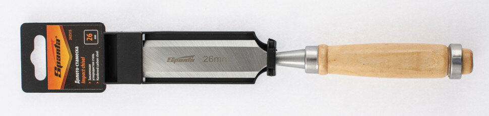 Плоское долото-стамеска с деревянной рукояткой предназначено для столярных и плотничных работ: выборка и зачистка небольших прямоугольных пазов, снятия фасок в натуральной древесине любой твердости.