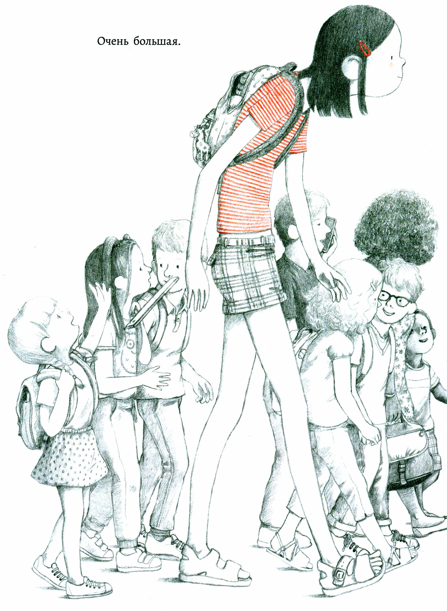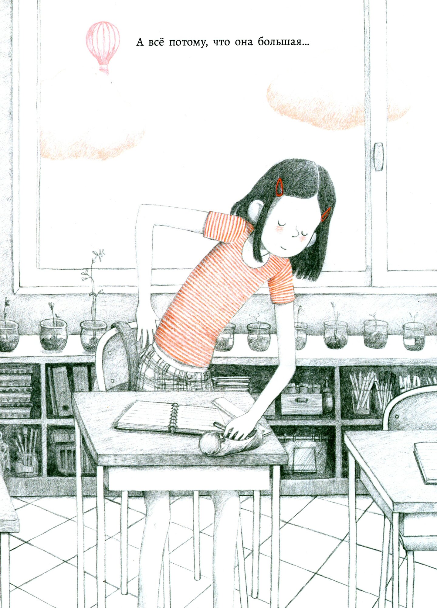 И общий посыл тоже кажется стоящим. Но. Я затрудняюсь определить, в каком возрасте её читать детям. Кажется, что проблема принятия своего тела актуальна в пубертате и не будет понятна дошкольникам. Но текста так мало, что не остаётся сомнения: книга для детей, а не подростков. Я думала, что она она больше про инклюзию, но главная героя на самом деле самого обычного размера (как оказалось, когда она стоит рядом со шкафом), поэтому ожидания не оправдались.