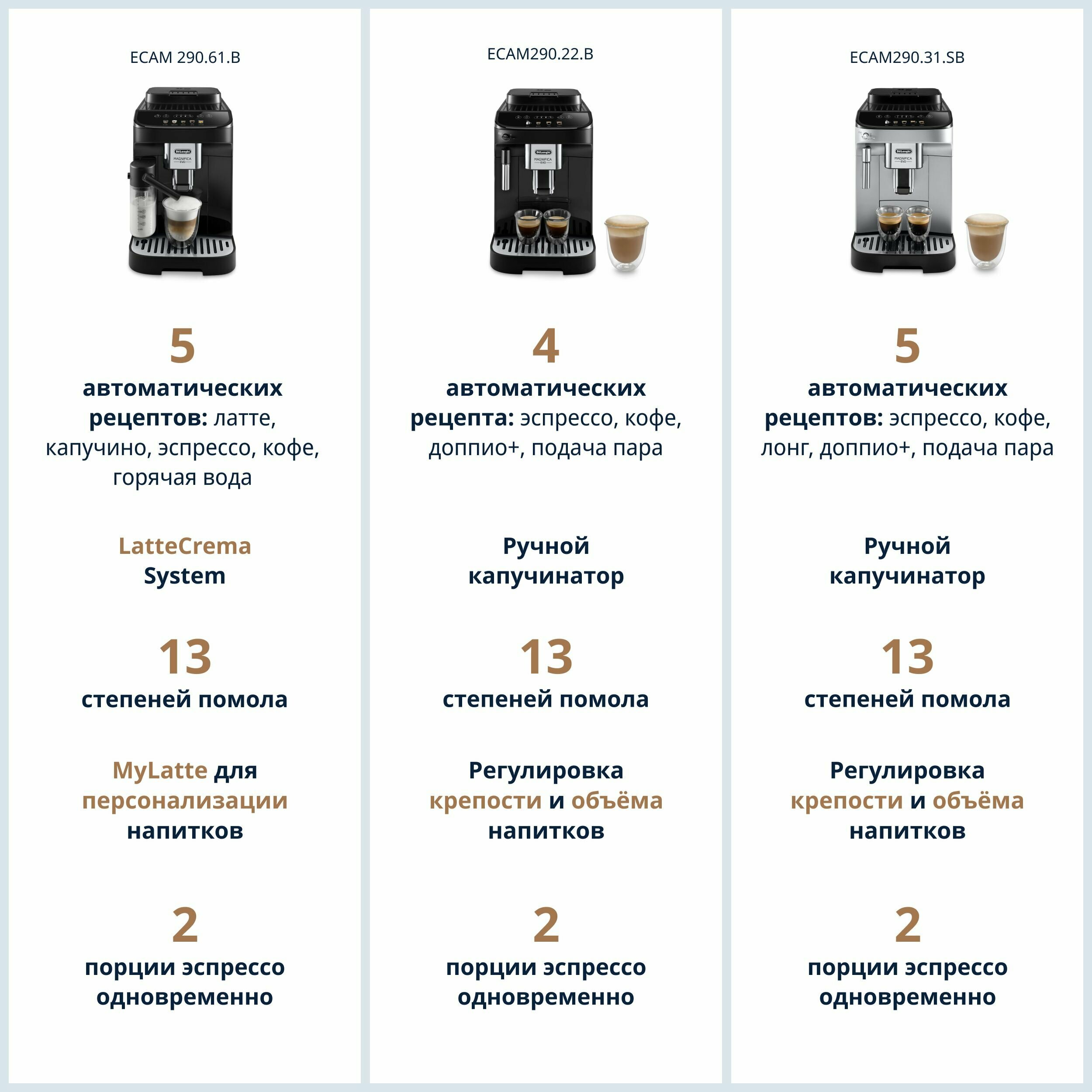 Сервис сравнения цен СкидкаГИД предлагает сравнить цены на товар «кофемашина DeLonghi ecam290.22.b»