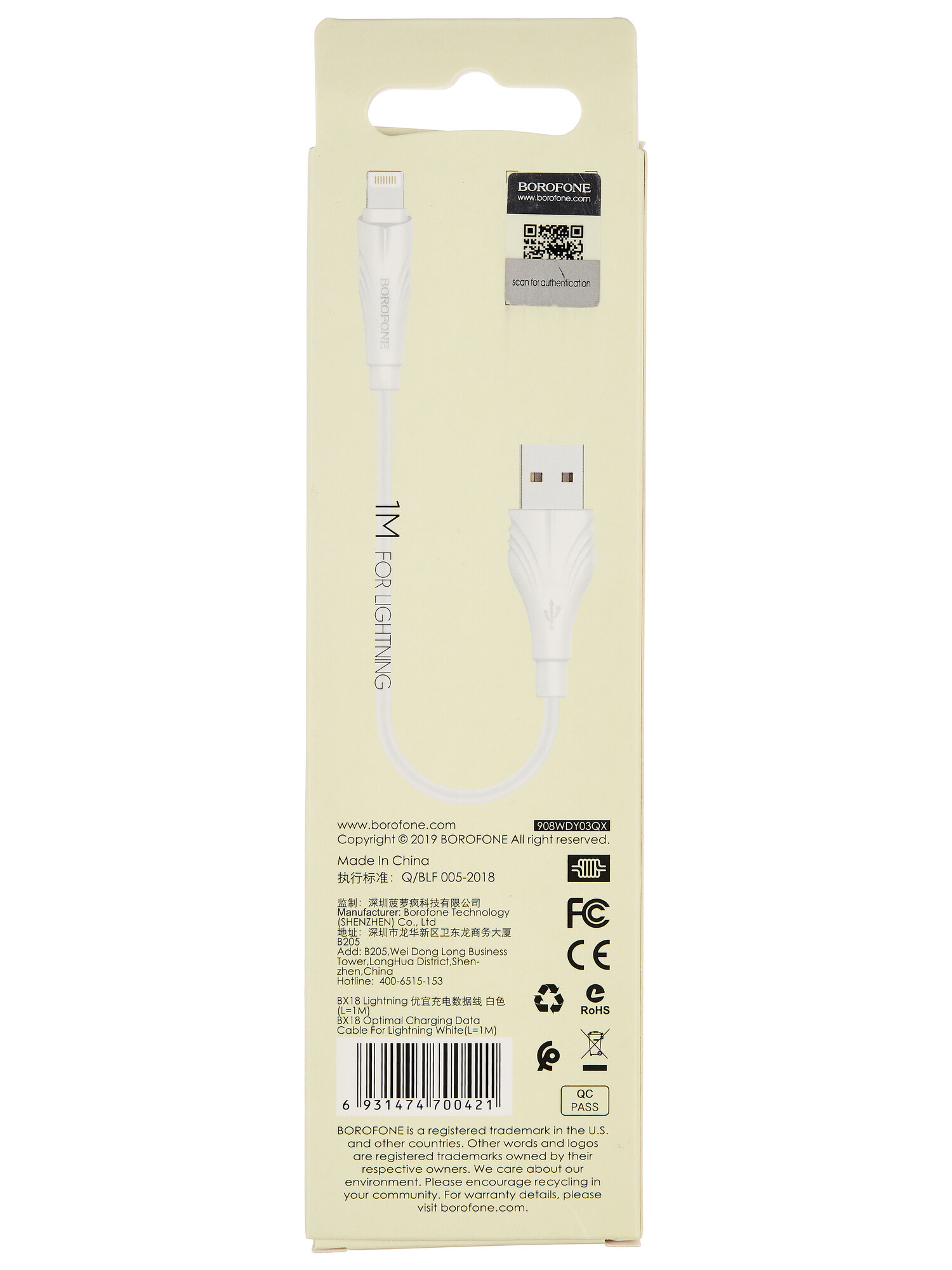Кабель Borofone BX18 Optimal USB - Lightning 1m White 6931474700421 23752-BX18iW1