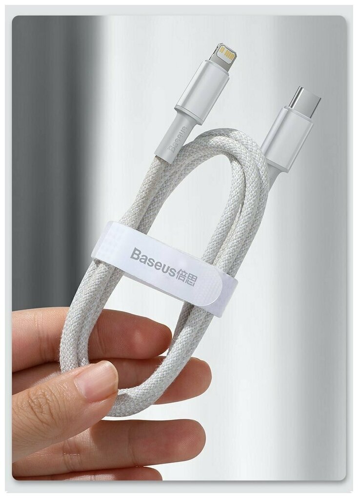 Кабель Baseus High Density Braided USB Type-C - Lightning 20W 1m White CATLGD-02