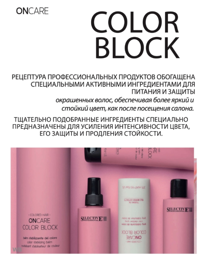 | Линия бренда | ON CARE COLOR BLOCK - продукты для сохранения ярких и насыщенных оттенков окрашенных волос |