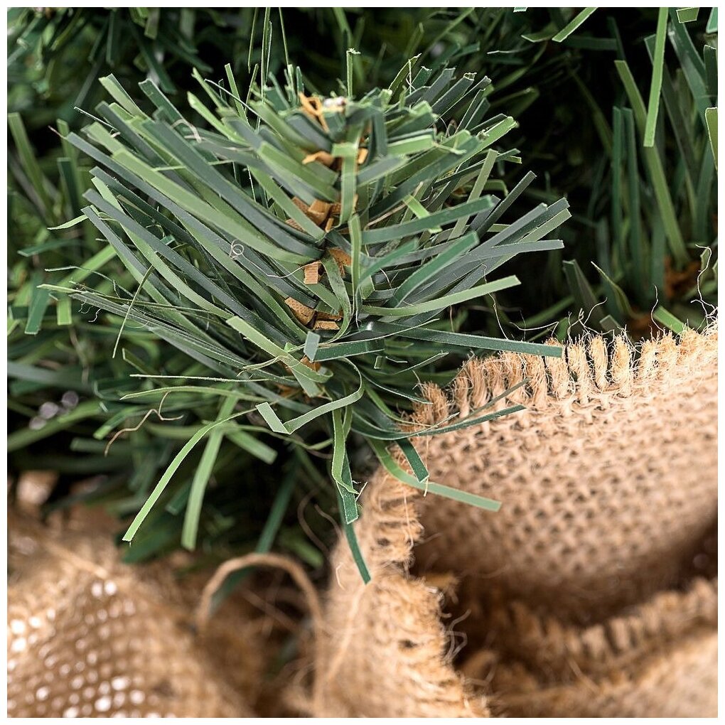 Елочка высотой 30 см в плетеном мешочке станет чудесным украшением интерьера и подходящим подарком на Новый год для родных и близких. Настольная композиция выполнена из ПВХ, искусственная пушистая хвоя имитирует настоящие еловые иголки. В текстильном мешочке находится устойчивая подставка, которую можно разместить на любой ровной поверхности. Материал изготовления характеризуется долговечностью: изделие прослужит долгие годы, не теряя первоначальный вид. Дополните елочку светодиодной гирляндой, фонариками, бантами или шарами — эффектный праздничный декор готов!