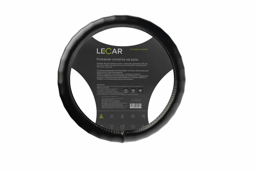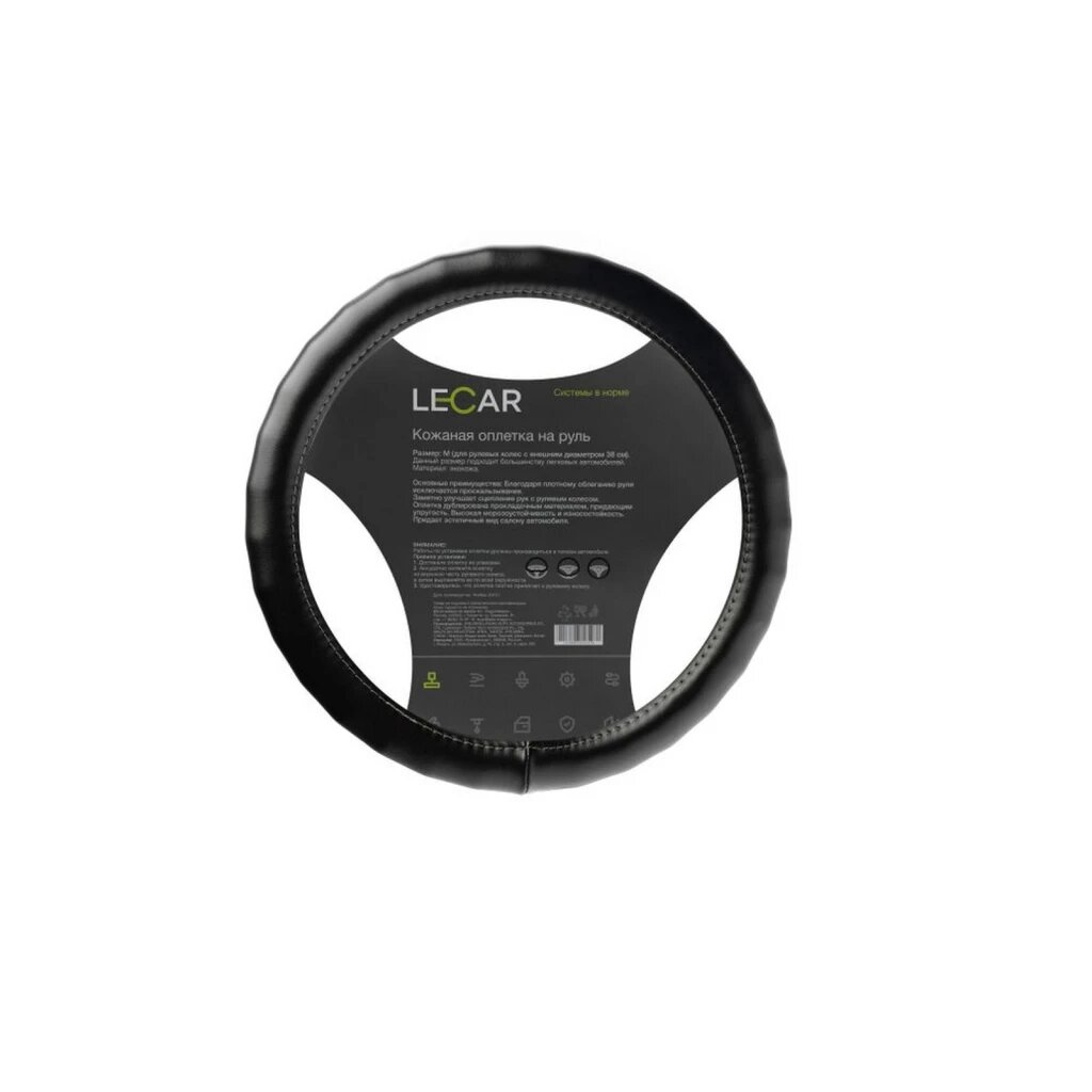 Оплетка на руль LECAR М (38 см) черная экокожа (волнистый обод) (LECAR000045208)