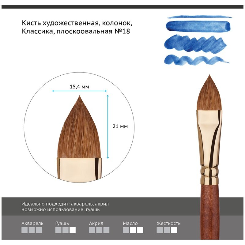 Кисть колонок №18 овальная Гамма "Классика" (ГМ-203018)