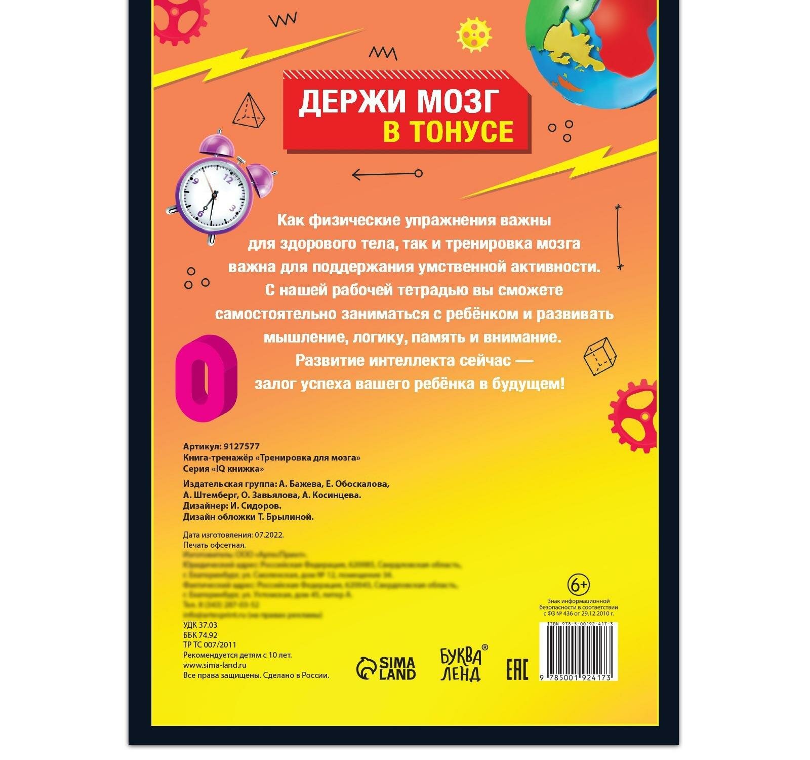 Сервис сравнения цен СкидкаГИД предлагает сравнить цены на товар «Книга: Книга-тренажёр Тренировка для мозга от10 лет (автор не указан); Буква-ленд, 2022»