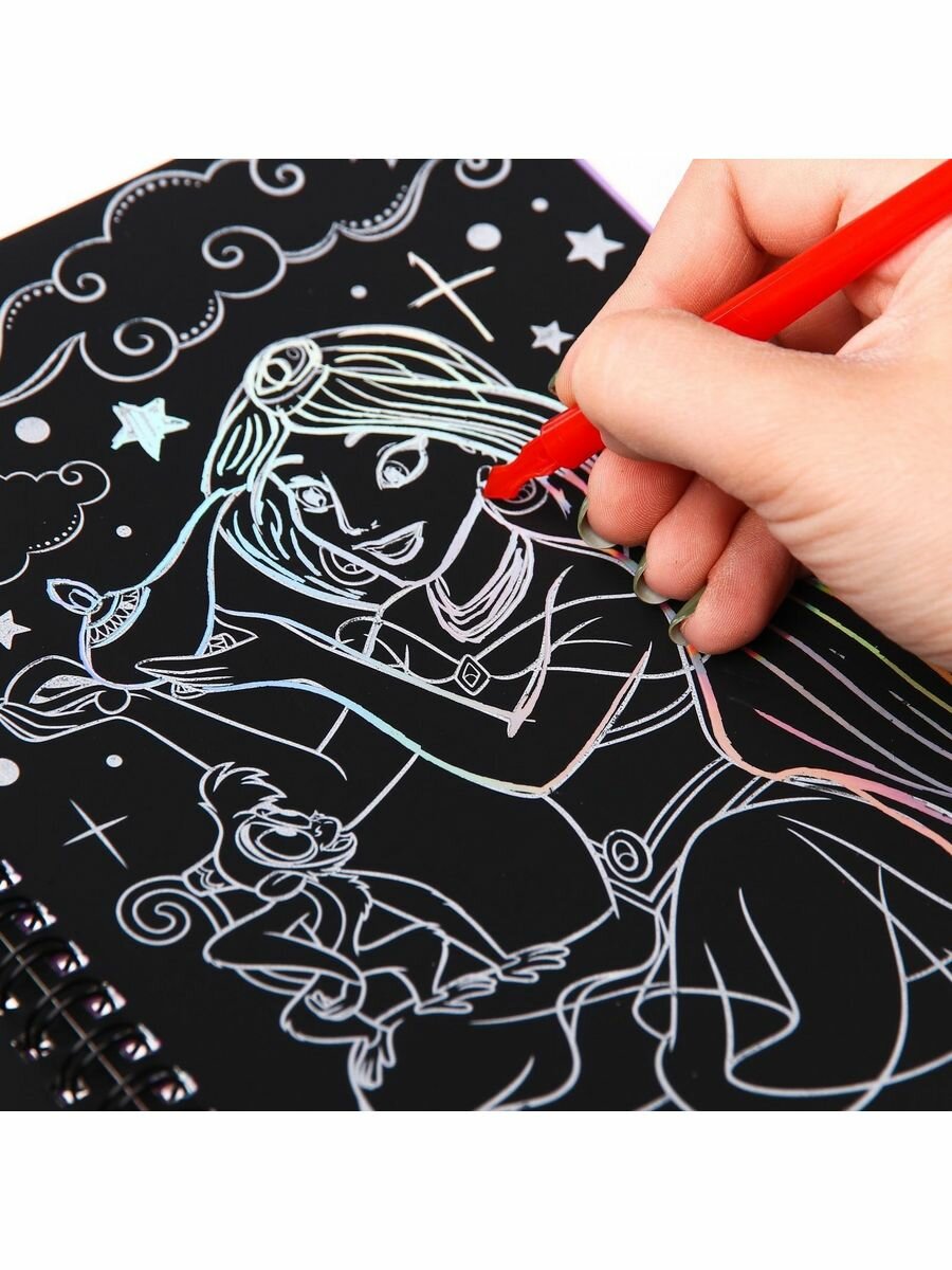 Блокнот-гравюра из 10 листов с голографичным, цветным фоном - это безграничное поле для фантазии! Создавайте узоры, рисунки, выполняйте задания и делитесь своими шедеврами с друзьями и близкими.