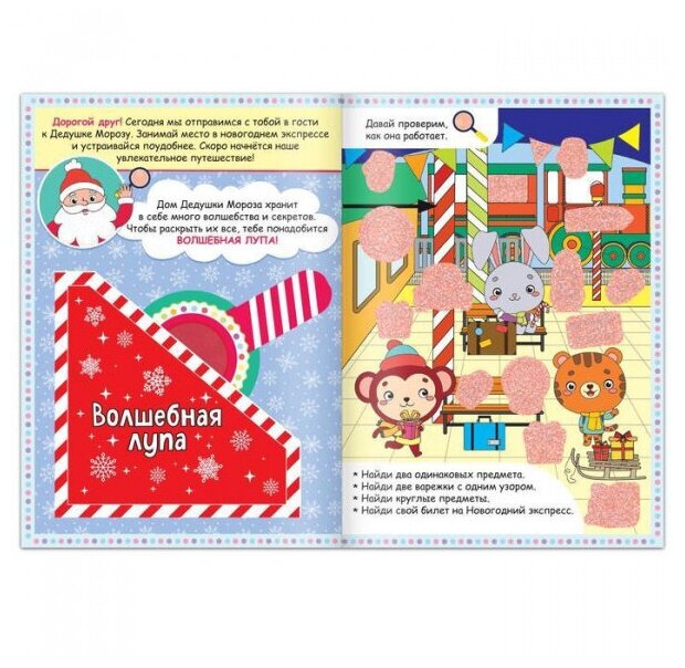 Скрасить ребёнку ожидание праздника поможет эта книга. Дед Мороз хранит много секретов. Чтобы узнать их все, малышу понадобится волшебная лупа.