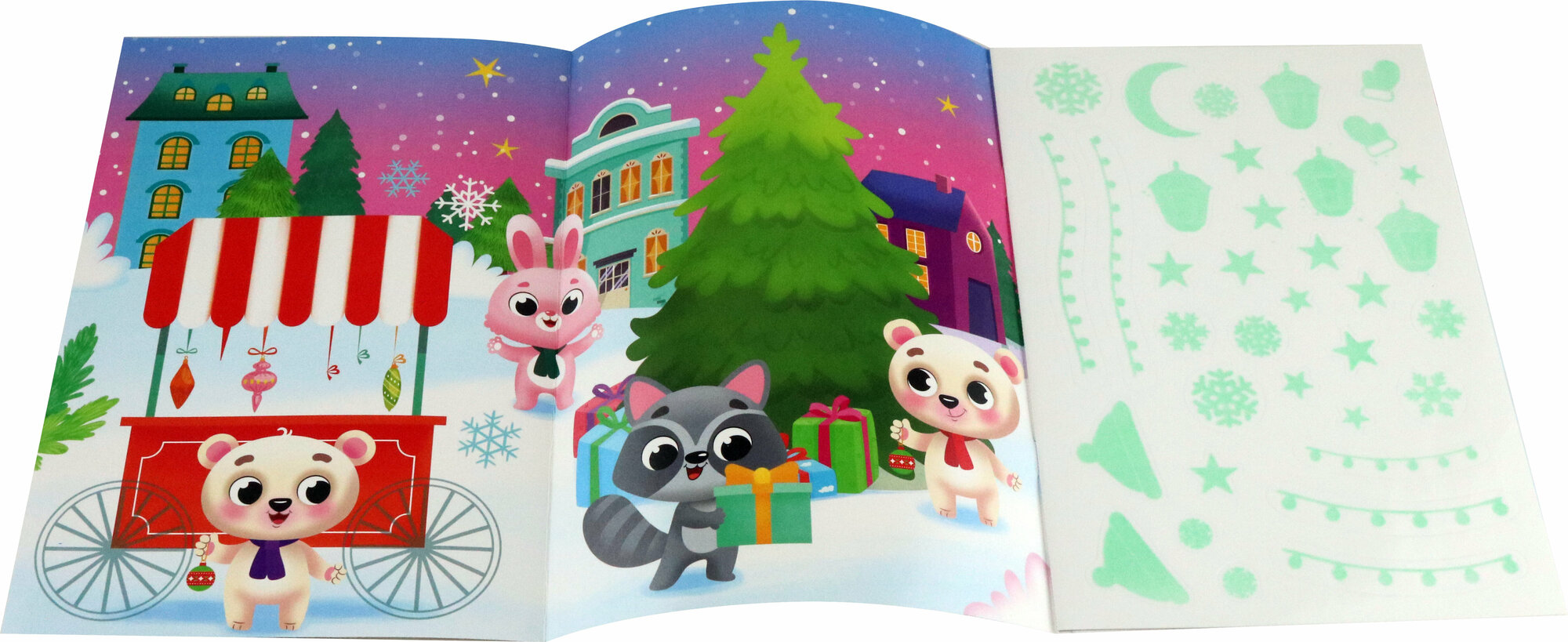 Все дети любят наклейки, особенно если они светятся в темноте! Пусть ваш малыш украсит странички наклейками, выключит свет — и начнётся волшебство!