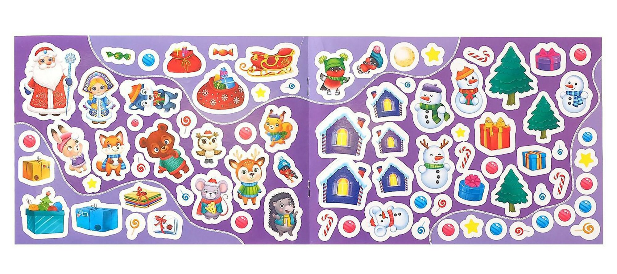 Этот альбом поможет малышу весело и интересно провести время в ожидании Нового года — ведь в нём 250 ярких наклеек, которые можно приклеивать не только на странички альбома, но и на новогодние открытки и рисунки. Ребёнок будет украшать и веселиться!