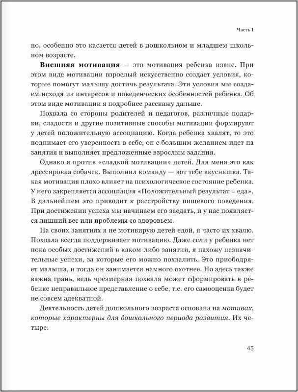 Кроме того, в первой части книги приведены все основные нормы развития ребенка и разобраны типичные ошибки родителей. Во второй части вы найдете множество игр для физического развития малыша, развития речи, фонематического слуха, когнитивных функций, мелкой моторики и не только.