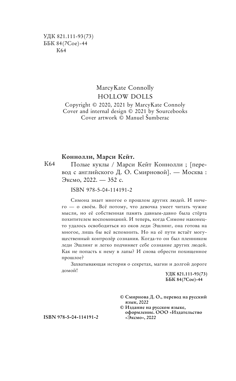 Книга: Полые куклы (Коннолли Марси Кейт); ООО "Издательство "Эксмо", 2022