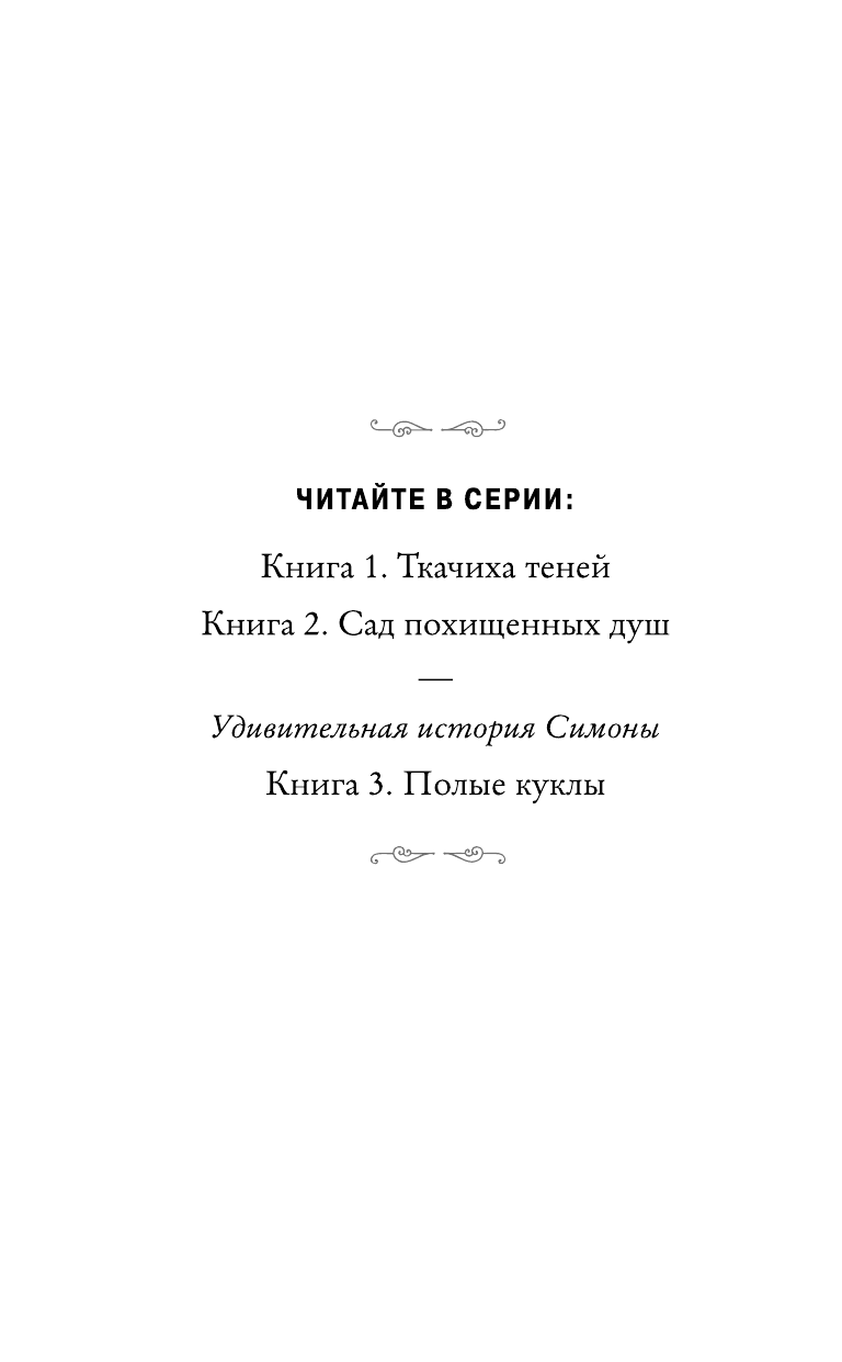 Очень интересная история! Мне понравилось, эта книга дополнительная история к другим двум книгам, эта уникальная история про девочку Симону. В других двух книгах она тоже была но, там были другие основные герои и на неё акцента было мало. Мне те две книги (которые основные), очень понравились, поэтому когда увидел эту книгу сразу решил приобрести. История очень интересная и её легко читать. Всем советую!