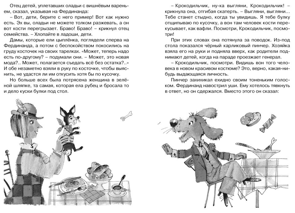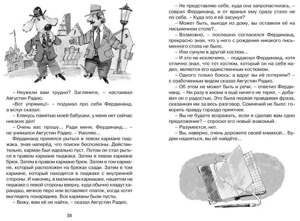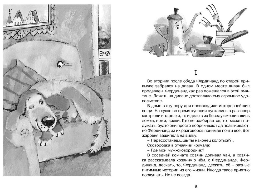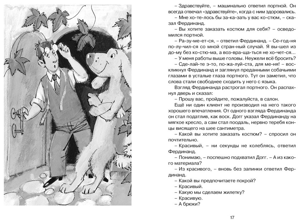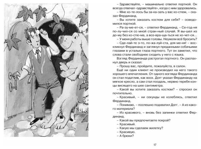 в общем повесть о том,как пёс по кличке Фердинанд путешествует по городу,и никто не замечает того,что он не человек а пёс.
