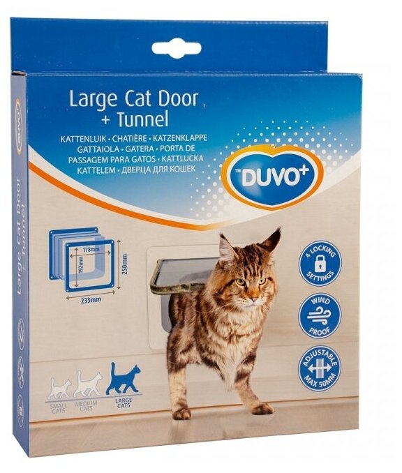 DUVO+ Дверь для крупных кошек с туннелем до 50мм белая рамка 23.3x25см (10925/DV)