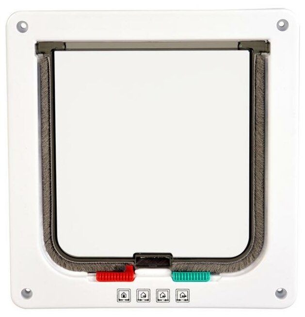 Прозрачная дверь с белой рамкой, предназначена для крупных кошек. Размер проема 192х178мм. У этой дверки 4 режима: только вход, только выход, вход и выход, закрыто.