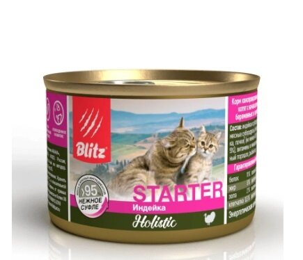 BLITZ Starter Holistic Корм влаж.индейка нежное суфле д/котятбеременных и кормящих кошек конс.200г (81839)