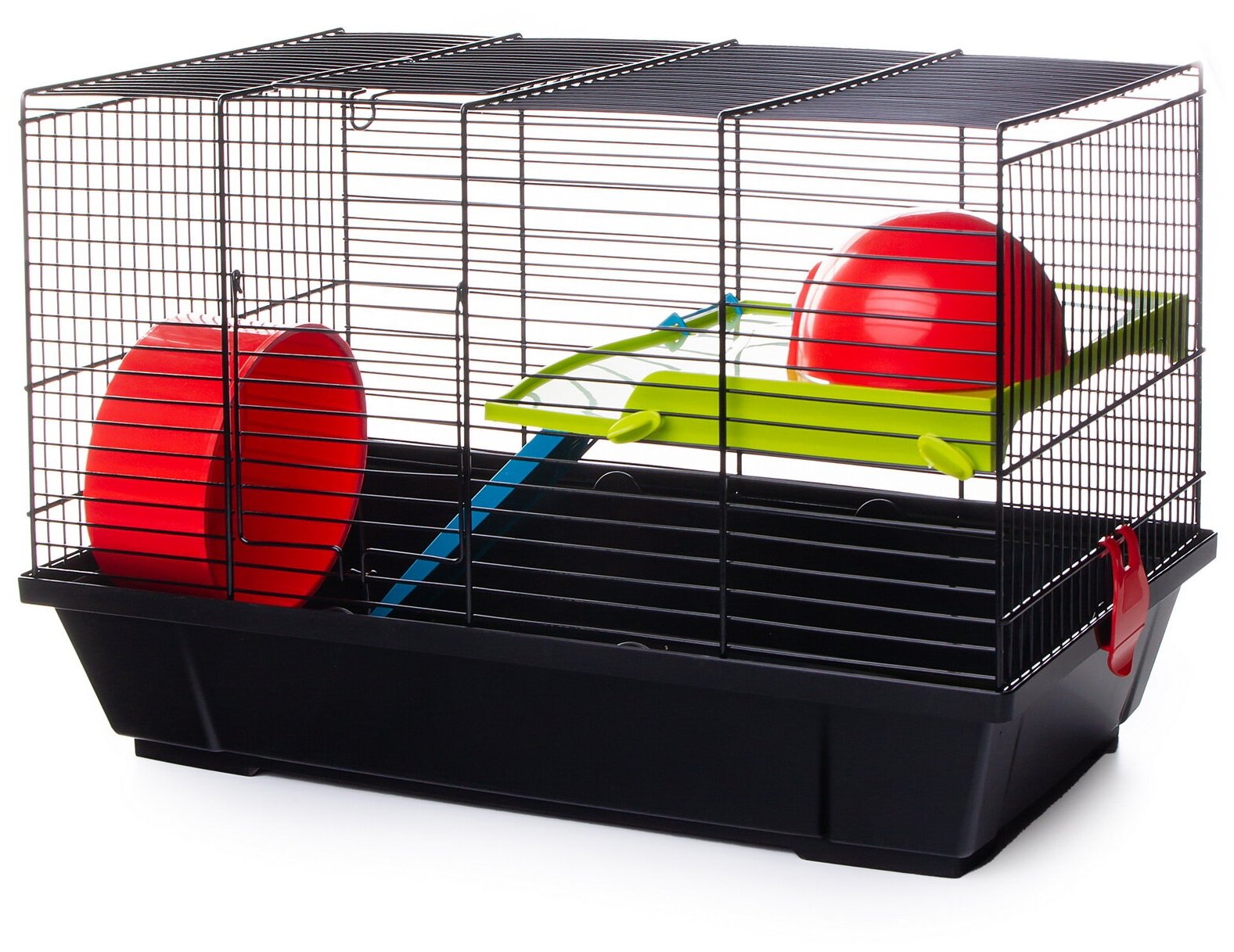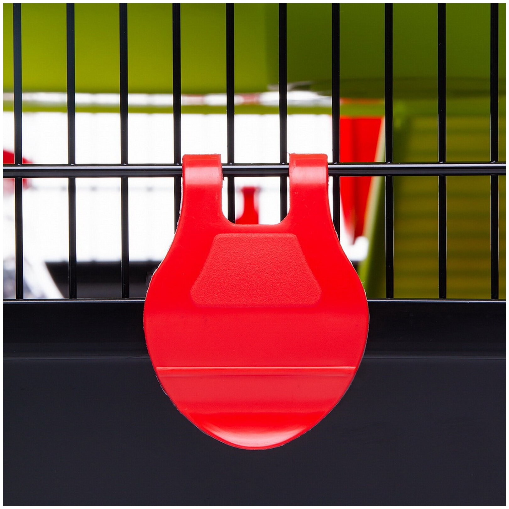 Высокий пластиковый поддон предотвращает разбрасывание за пределы клетки наполнителя и мелкого мусора и создаёт для маленького обитателя атмосферу уюта и защищенности. Для свободного доступа к зверьку и ежедневной уборки есть две дверки: одна располагается в верхней части решетки на "потолке, вторая находится на передней стенке клетки. В случае необходимости поменять наполнитель или провести генеральную уборку клетка легко и просто разбирается - пластиковая основа присоединяется к верхней части с помощью двух защелок. Решетка на дне поддона не предусмотрена, а значит, ваш любимец не рискует повредить лапку или хвост даже при самых смелых маневрах.