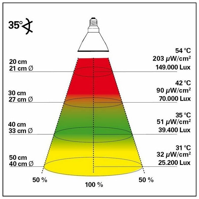 Благодаря хорошей тепловой отдаче, рептилия может самостоятельно решать, сколько ей побыть под солнцем, а также когда необходимо охладиться в тени. Это позволяет минимизировать риски получения ожогов или даже рака кожи у рептилий. Вспомните себя на пляже: когда мы долго находимся на солнце, мы уходим в тень. А если бы солнце не давало тепло, мы могли бы загорать под ним целый день и получить солнечный ожог. Именно поэтому данная лампа, воссоздающая эффект солнца в террариуме, позволяет этого избежать.