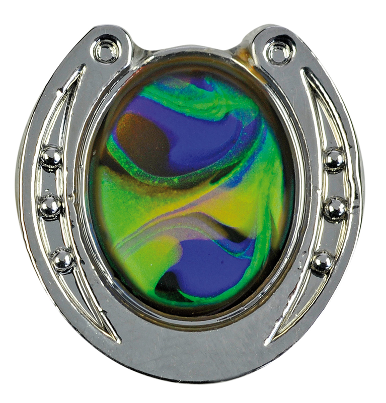 HappyROSS Значок металлический "Подкова с камнем меняющем цвет" 14х15мм серебристый (Германия) (41227/BB)