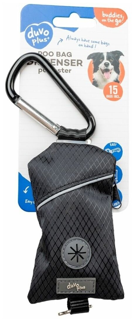 DUVO+ Диспенсер для гигиенических пакетов нейлон чёрный 6x20x1.5см (Бельгия) (12928/DV)