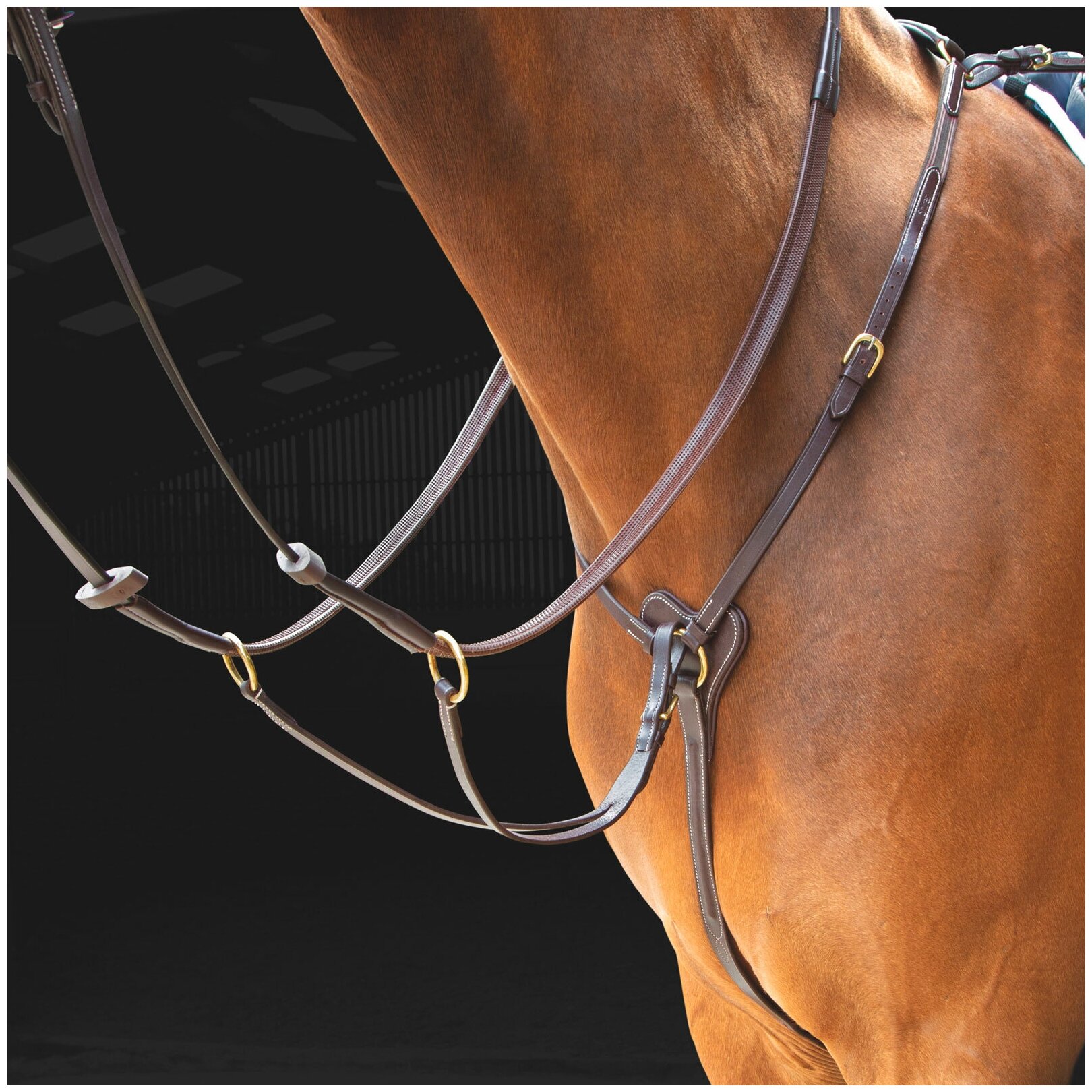 Помощь новичкам: подперсье необходимо для того, чтобы седло не сползало назад. Мартингал может помочь с лошадью, которая ложится в руку, закусывает железо, выдирает и вскидывает голову. Нужно понимать, что мартингал – это вспомогательные средство управления, и оно должно грамотно использоваться.