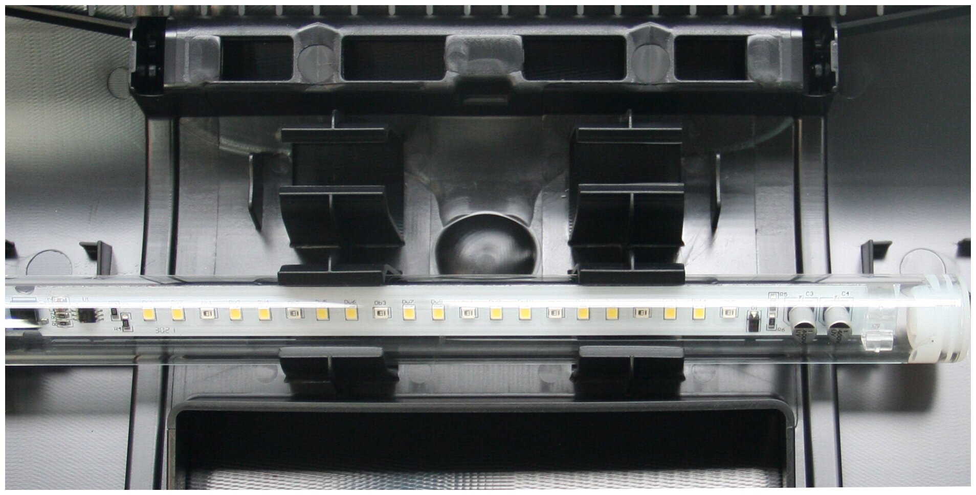 Аквариумы оборудованы современным диодным осветительным модулем LEDDY TUBE 7Вт Day&Night, что позволяет наслаждаться аквариумом днем и ночью. Ночное освещение позволит вам понаблюдать за самыми пугливыми обитателями Вашего аквариума, а специально подобраный спектр модуля не провоцирует рост водорослей.