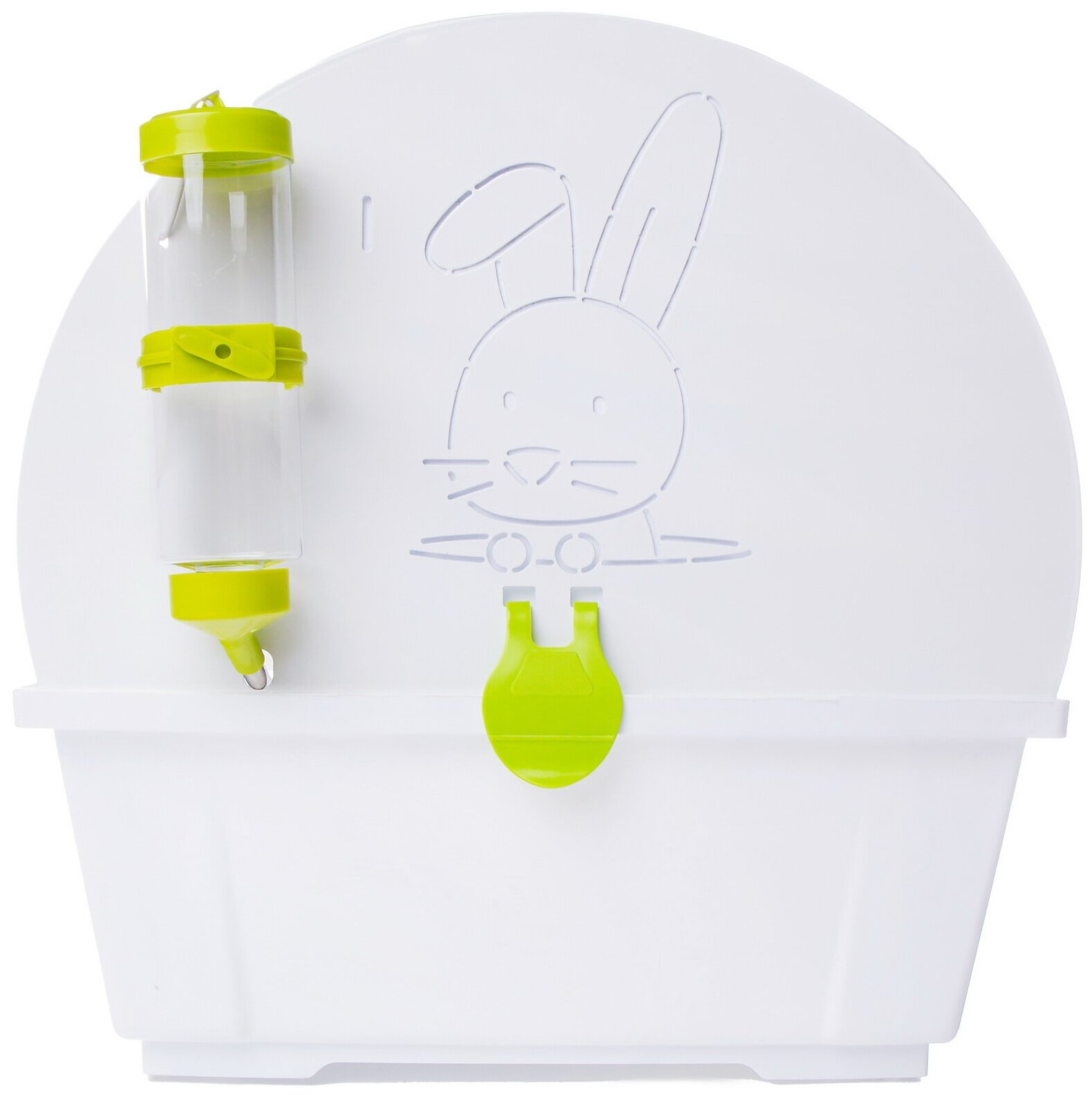 Клетка довольно компактная, но в ней помещаются все самые необходимые аксессуары для пушистика: миска для корма, решетка для сена и бутылочка-поилка с шариком в металлическом носике. Боковые стенки из тонкой стали с перфорацией в виде забавных зайчиков и высокий пластиковый поддон предотвращают разбрасывание наполнителя и мелкого мусора и создают для маленького обитателя атмосферу уюта и защищенности.