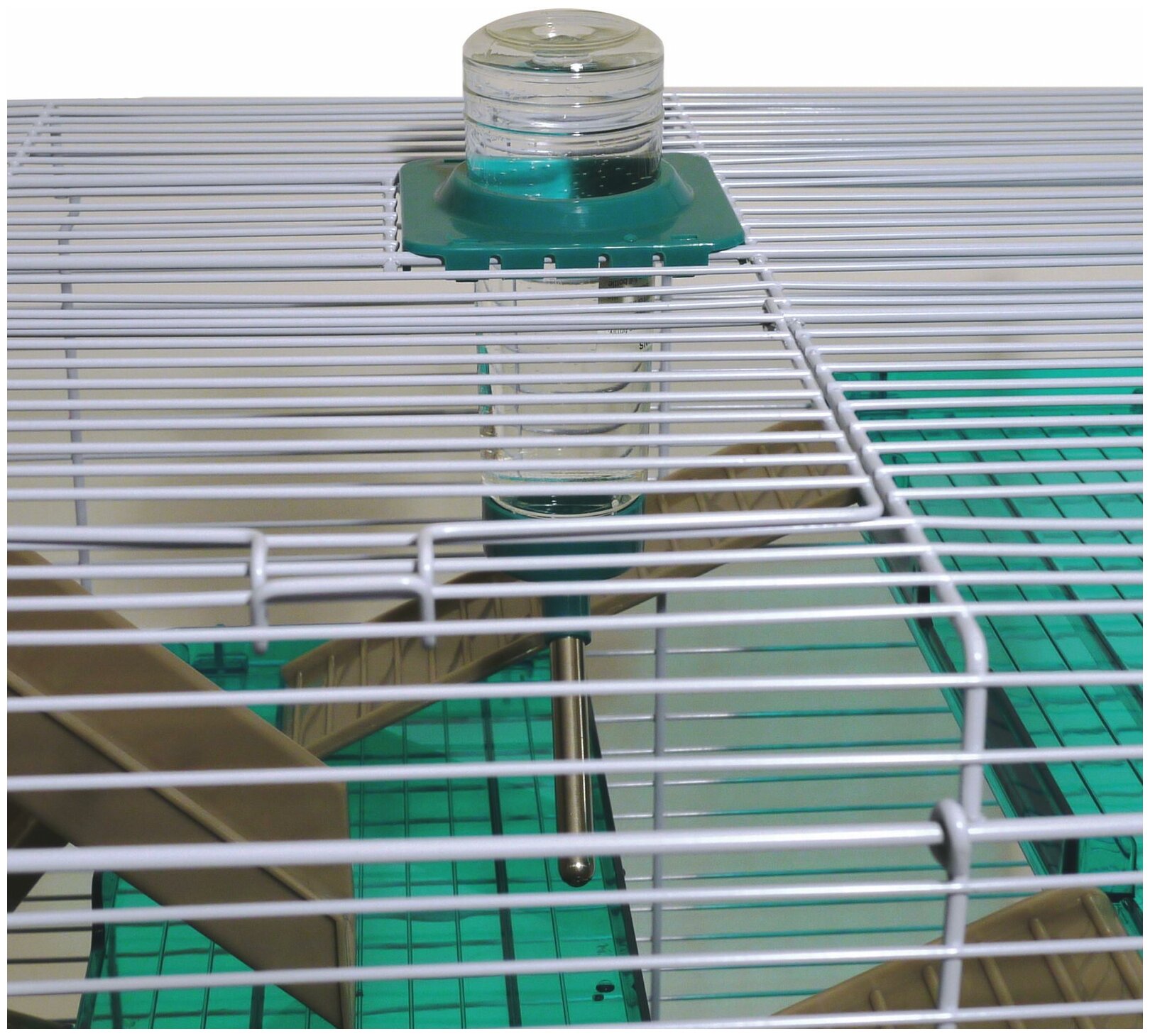Конструкция клетки удобна для уборки, две части скреплены по бокам двумя защелками, они легко открываются для гигиенических процедур. Пищевой пластик поддона можно мыть, он не боится воды, не теряет цвет и не выделяет вредных веществ.