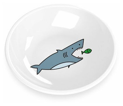 Неглубокая миска для животных с веселой рисованной акулой выглядит как настоящая керамическая тарелочка и станет прекрасным дополнением вашей кухни. Из нее вашему любимцу будет так приятно кушать!