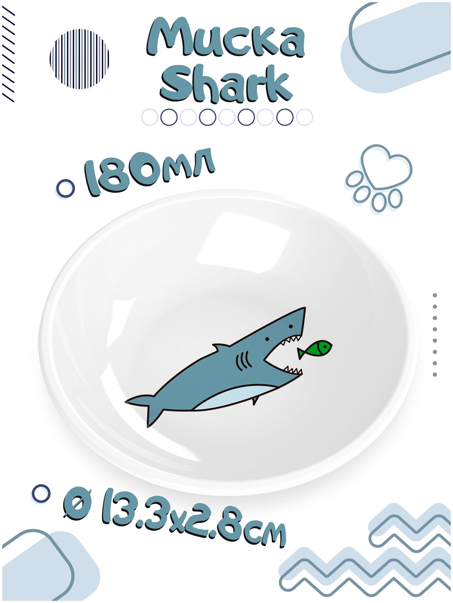 Модель: Миска Tarhong Shark белая с рисунком для животных 180 мл 13.3х2.8 см