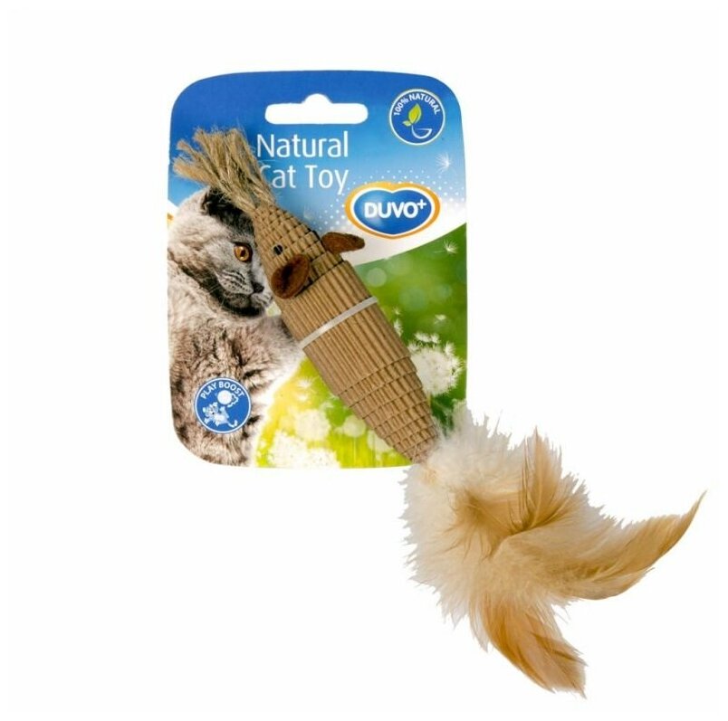 DUVO+ Игрушка для кошек дразнилка "Мышь из картона с перьями" коричневая (1717047/DV)
