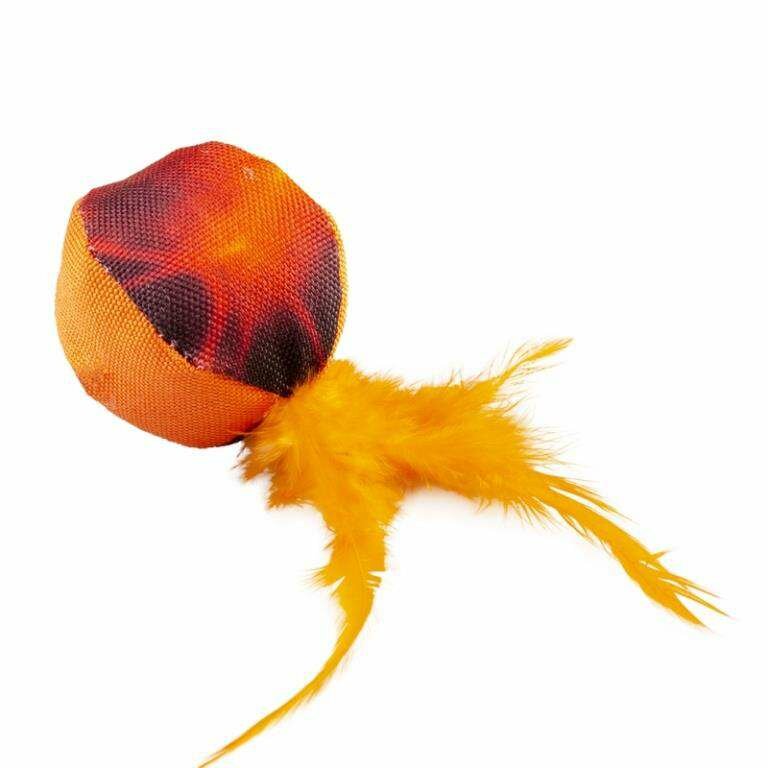 DUVO+ Игрушка для кошек с кошачьей мятой "Мяч с перьями Флэш" оранжевый 12х4х4.5см (Бельгия) (12080/DV)