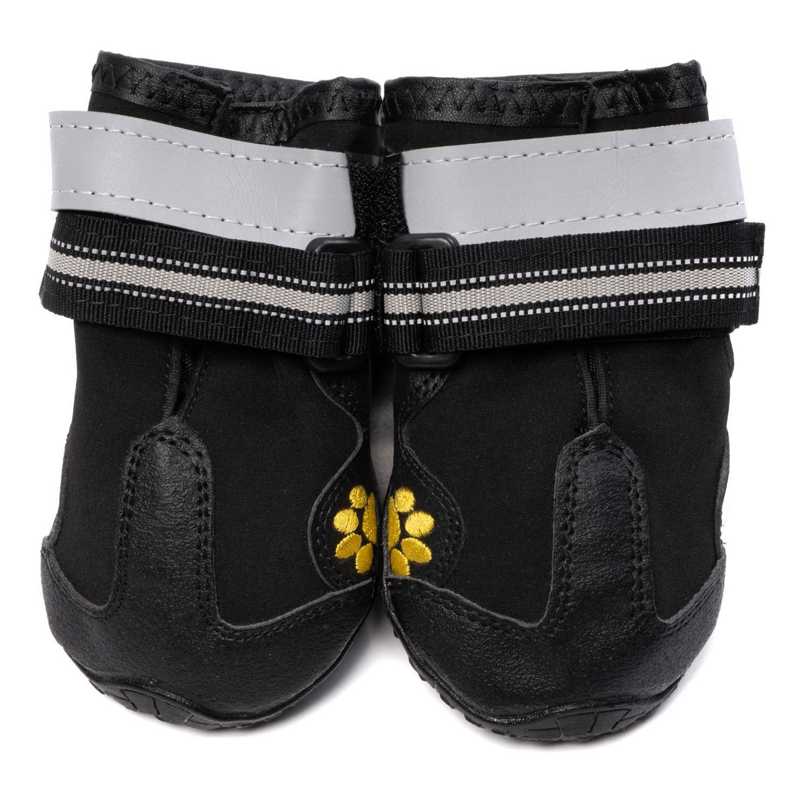 Эта гибкая, дышащая обувь снижает риск инфекции после повреждений поверхности лап и способствует их заживлению. Противоскользящая подошва обеспечивает хорошее сцепление собаки со скользкой поверхностью. Кроме того, она защищает чувствительные лапы от воздействия холода, жары, щебня и мелких камешков. Ваша собака будет легко заметна в темноте благодаря светоотражающим полоскам. Эти ботинки легко надеваются, а регулируемая лента-липучка обеспечивает идеальную посадку.