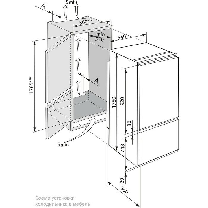 | Тип холодильника | Встраиваемые холодильники с нижней морозильной камерой |