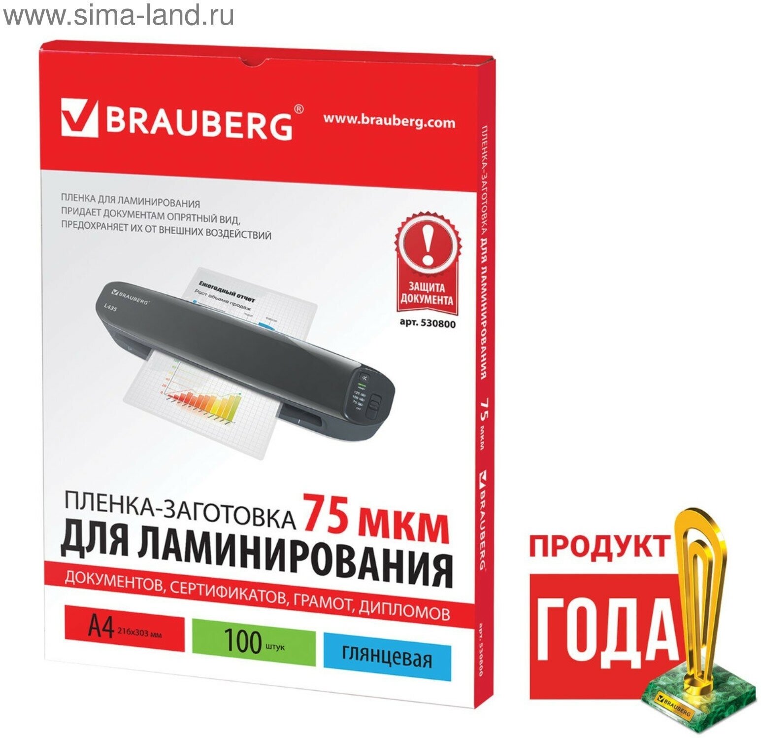 пленки для ламинирования Brauberg 100шт А4 75 мкм 530800