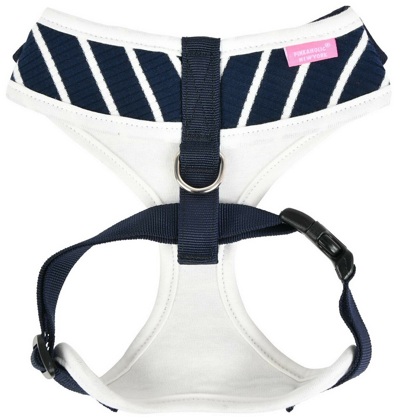 PINKAHOLIC Шлейка для собак "Cordelia" синяя в белую полоску/белый кант S (Южная Корея) (NAUA-HA7601-OW-S)