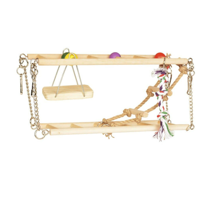 DUVO+ Игровой комплекс для грызунов деревянный "Подвесной мост с качелями" бежевый 27x16x10см (4956007/DV)