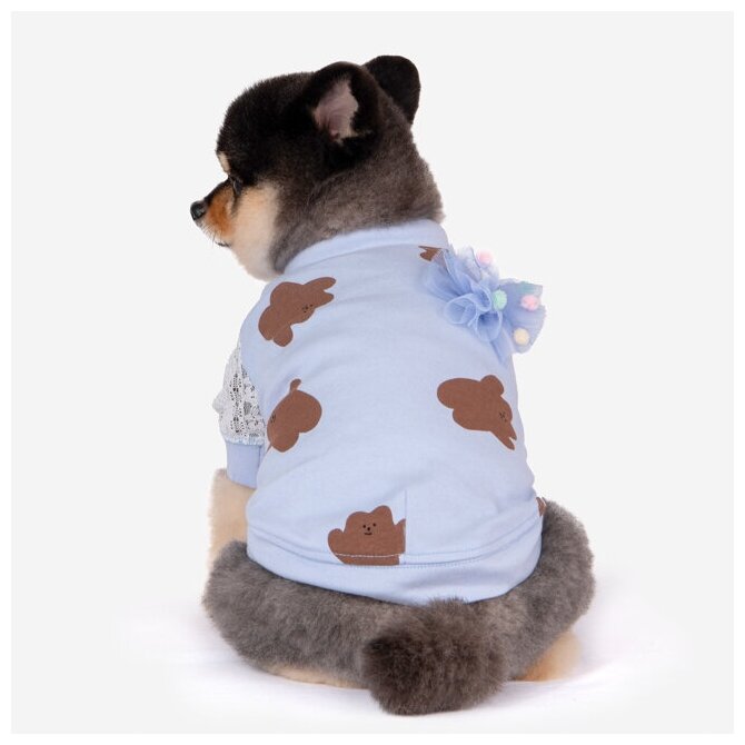 Стильная футболка с принтом в виде мишек смотрится очень изысканно как самостоятельный предмет гардероба, так и в комплекте с юбочкой или штанишками. Футболка очень легкая, комфортная и уютная, есть отверстие для поводка. Нижняя часть укреплена мягкой трикотажной резинкой, для лучшей посадки. Изделие легко стирается и чистится от шерсти.