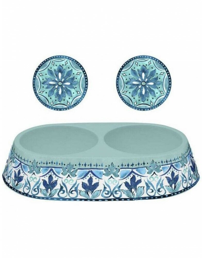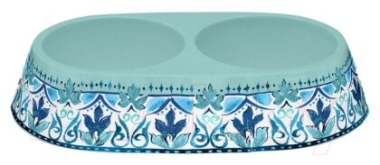 TARHONG Миска для животных двойная "Gibraltar" бирюзовая с рисунком 38.4х23.1х7.7см/950мл (PPMZ8151DBGM)