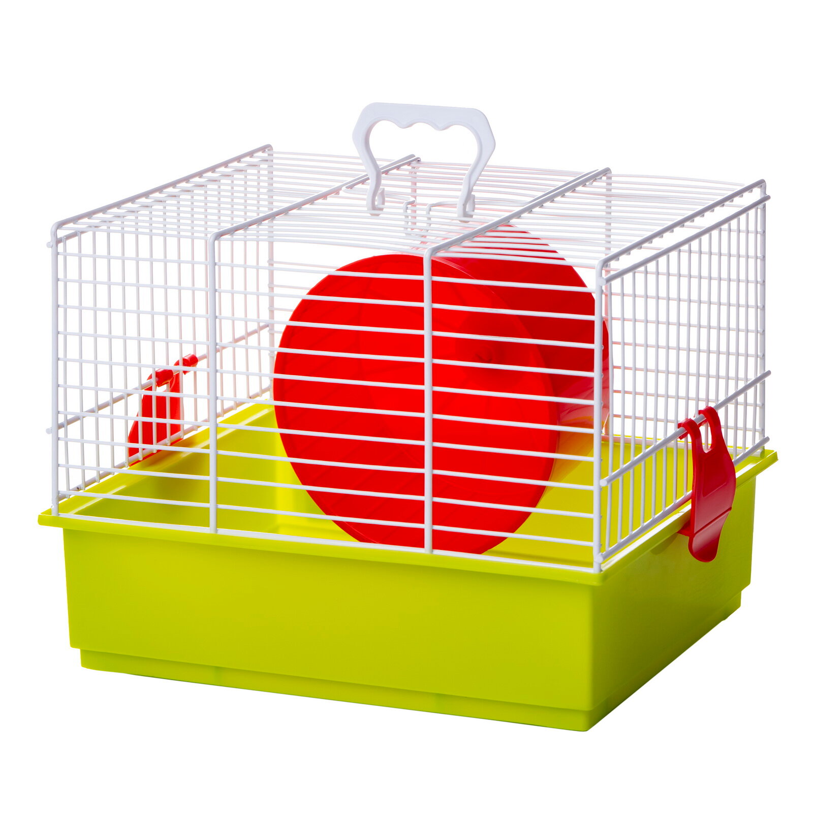 В комплекте: клетка - 1 шт, беговое колесо - 1 шт, защелка для соединения с поддоном - 2 шт, ручка для переноса - 1 шт.