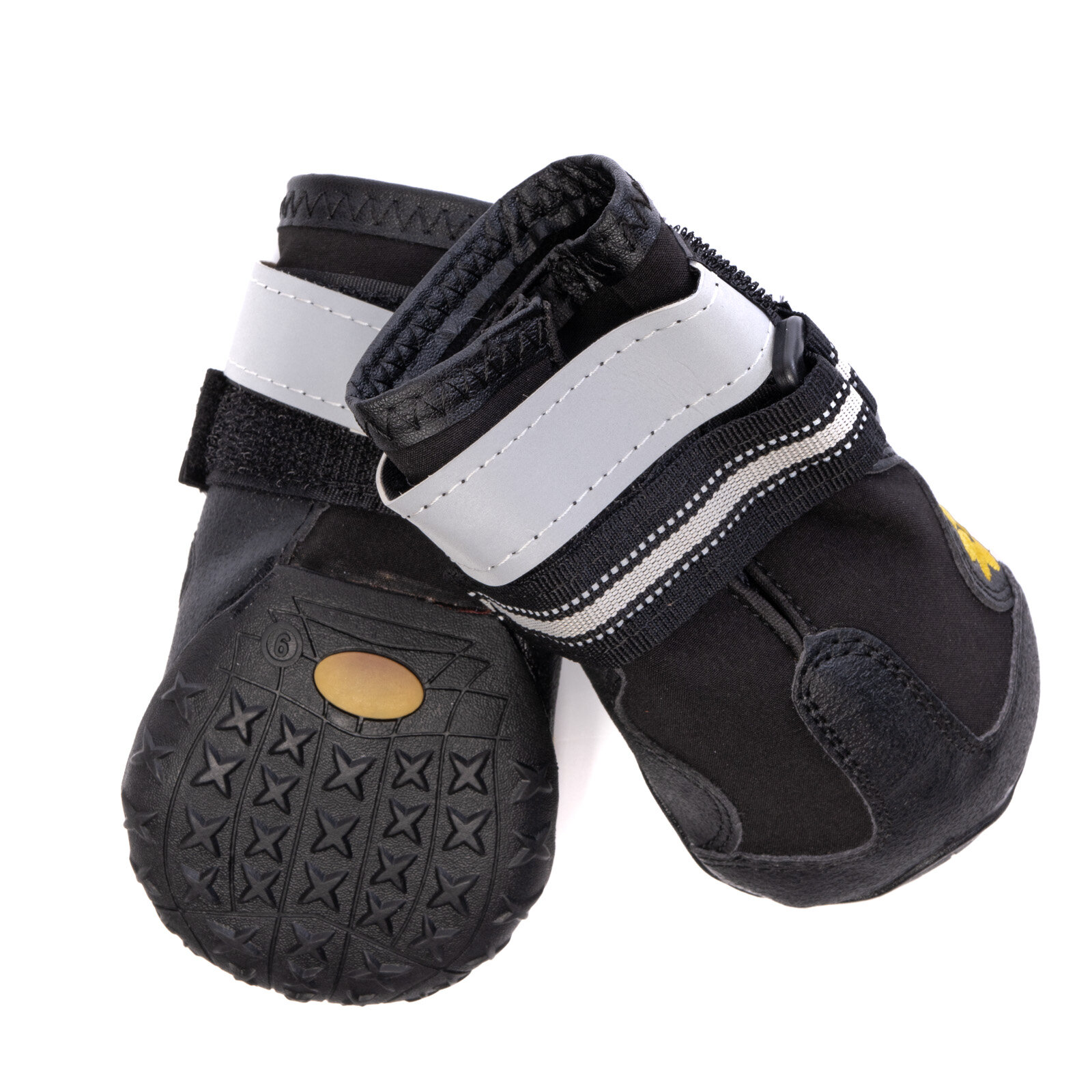 Эта гибкая, дышащая обувь снижает риск инфекции после повреждений поверхности лап и способствует их заживлению. Противоскользящая подошва обеспечивает хорошее сцепление собаки со скользкой поверхностью. Кроме того, она защищает чувствительные лапы от воздействия холода, жары, щебня и мелких камешков. Ваша собака будет легко заметна в темноте благодаря светоотражающим полоскам. Эти ботинки легко надеваются, а регулируемая лента-липучка обеспечивает идеальную посадку.