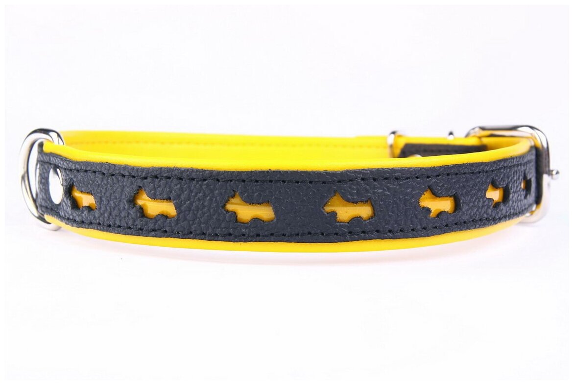 Ошейник выполнен из натуральной, плотной, телячьей кожи снаружи и специально обработанной, мягкой эко-кожи внутри.