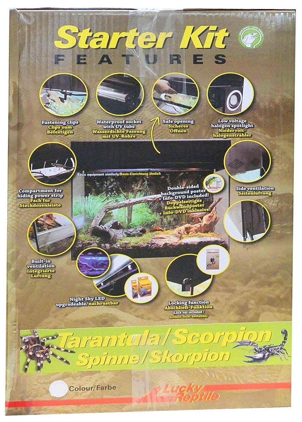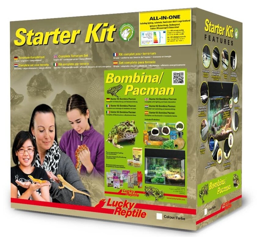 Полностью оборудованный стеклянный террариум для жаб и лягушек, чёрный, 80×40×52 см.Стартовый набор Lucky Reptile Starter Kit Bombina/Pacman для лягушек и жаб представляет собой комплект всего необходимого для обустройства жилища своему питомцу. Правильно подобранные и сочетаемые друг с другом компоненты подходят для моделирования необходимой среды обитания. В данном случае это могут быть жабы или рогатые лягушки.Комплект состоит из террариума, оснащённого проточной вентиляцией и крышкой. Крышку можно открывать, что делает процесс уборки и кормления более удобным. Она оснащена отверстиями для навесного замка, креплениями для систем осадков. Здесь же находится полость для хранения кабелей, шлангов.Резервуар террариума разделен на две части в нижней области. Это позволяет создать имитацию прибрежной области с водой и частью берега. Кроме того в комплект входит и внутренний фильтр для воды.Освещение и обогрев обеспечиваются УФ-лампой Т5 (для получения необходимого количества ультрафиолета) и галогенной лампой (для получения тепла). В качестве почвенного наполнителя используется натуральный субстрат из земли, мха и керамзита. Дополнительно в наборе находятся декоративные элементы, задний фон двусторонний с фотографиями тропической местности. Все элементы уникальны для каждого набора, поэтому изображения могут не соответствовать реальным комплектующим.Стартовые наборы Lucky Reptile Starter Kit актуальны для разведения животных в качестве хобби для тех, кто еще не сталкивался с миром террариумов, и доступны в белом и черном цветах.Параметры:Размер 80×40×52 см, цвет — чёрный, имеются отверстия в крышке для крепления лампы, навесного замка, систем осадков, оснащен внутренним фильтром.Комплектация:Субстрат Lucky Reptile Jungle Bedding 2,5 л, керамзит 2,5 л, мох Lucky Reptile Terrarienmoos, фильтр Lucky Reptile Nano Clean, фон двусторонний, декоративные украшения, лампа Lucky Reptile UV Sun T5 8 Вт, Lucky Reptile Halogen Sun LV Nano 10 Вт, брошюра, инструкция в картонной коробке.