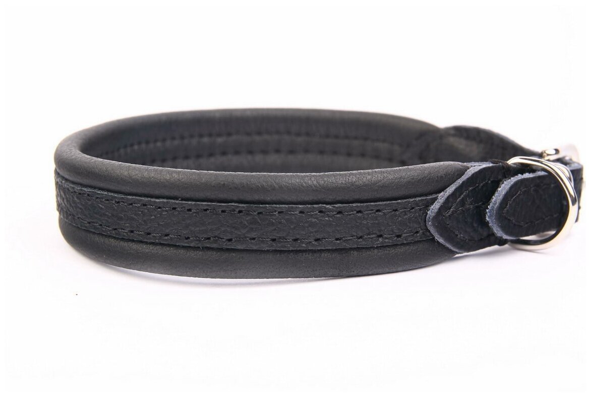 Ошейник выполнен из натуральной, мягкой кожи-наппа, укреплен вставкой из черной, телячьей кожи. Это самый мягкий ошейник, из всей линейки, для особо чувствительных собачек.