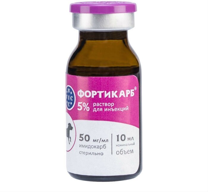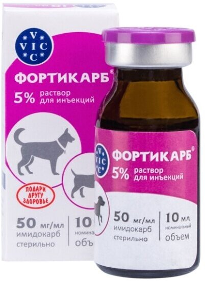 ВЕТМАРКЕТ Фортикарб 5% Лечение и профилактика пироплазмоза р-р д/инъекций 10мл VIC (Ф024)