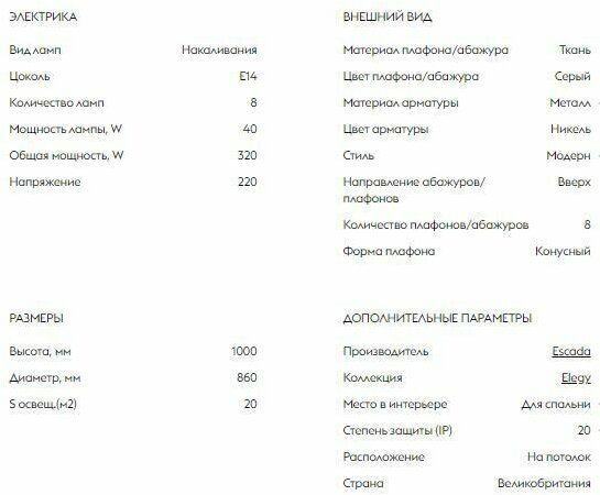 | Цвет плафонов | Серый |